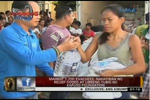 Nasa 400 na pamilyang evacuee sa Albay, nabigyan ng relief goods at tubig ng Kapuso Foundation Read more