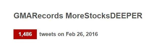 According to Trendinalia PI on Twitter, “372 users and 447 tweets (391 RTs) in 5 minutes made ‘GMARecords MoreStocksDEEPER’ a Trending Topic in Philippines.”