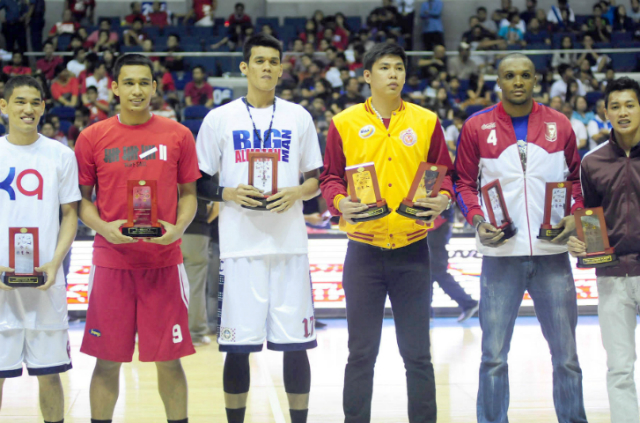 From left to right - Kevin Alas, Jake Pascual, Defensive Player of the Year Raymond Almazan, MVP Ian Sangalang, Rookie of the Year Noube Happi, and Most Improved Player Earl Thompson. With the exception of Almazan, the players also comprise Season 88's Mythical Five. KC Cruz. . KC Cruz