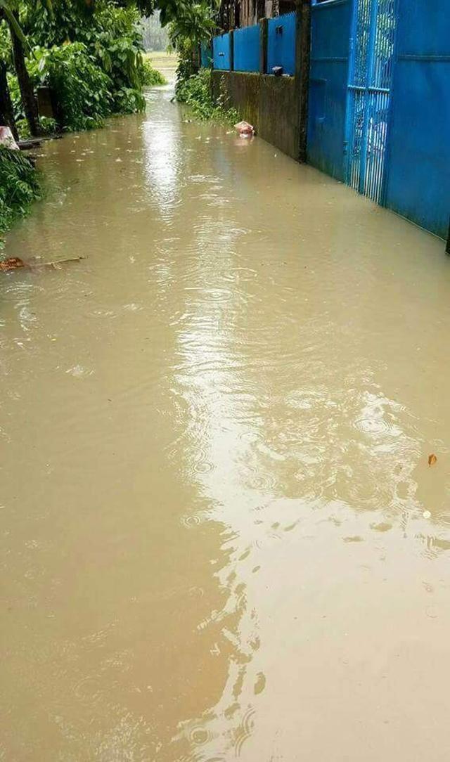 Binaha nitong tanghali ang ilang lugar sa bayan ng Alabat dahil sa walang patid na ulan.