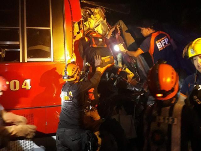 Patungo ang mga sasakyan sa Bicol. Sa tindi ng pagsalpok ay wasak na wasak ang six-wheeler truck na may kargang bigas.