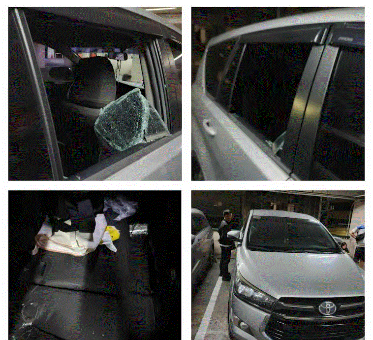Binasag daw ng suspek ang kanang bintana ng passenger seat at tinangay ang isang laptop.