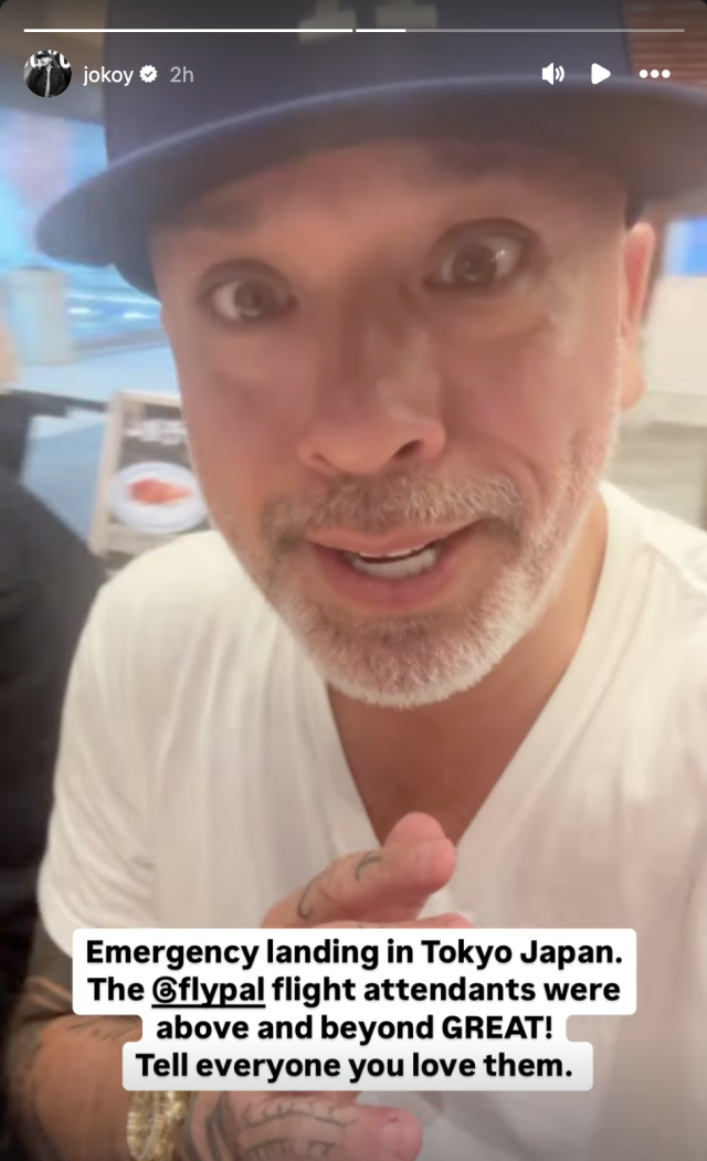 Kabilang ang stand-up comedian na si Jo Koy sa 355 na pasahero ng Philippine Airlines (PAL) flight na nag-emergency landing sa Haneda Airport sa Tokyo, Japan nitong Huwebes dahil sa usok sa cabin.