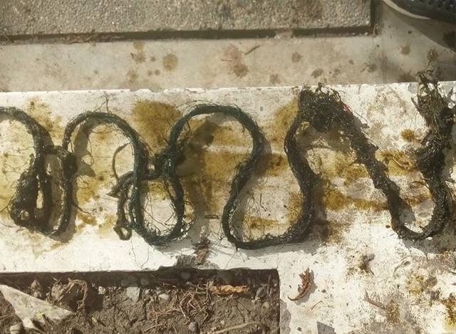 Photo courtesy by Environmental Conservation and Protection CenterNakabara sa lalamunan nito ang 150 centimeters na nylon rope, dahilan upang hindi na makaabot sa bituka ang kinakain ng pawikan na may habang 92 cm.