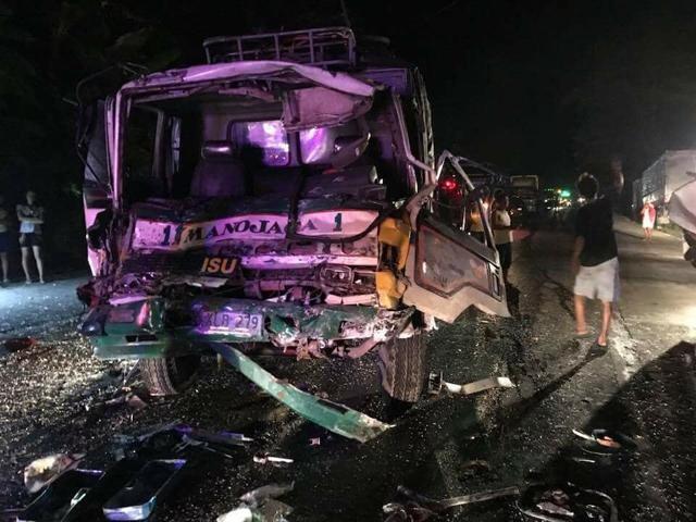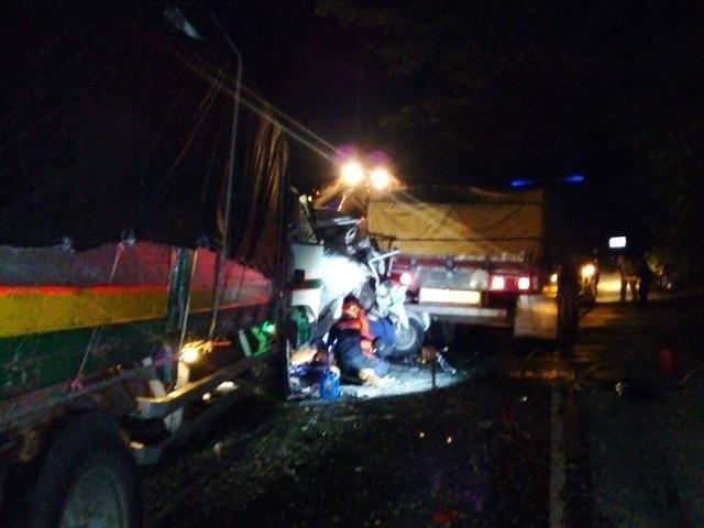 Naipit sa loob ng van ang mga sakay nito, at naipit din ang driver at dalawang pahinante ng truck na bumangga sa van.