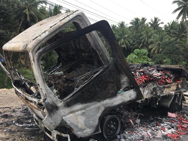Habang binabaybay ng sasakyan ang daan, nakaramdam umano ng init sa likurang bahagi ang driver at nang siya ay lumingon, malaki na ang apoy at unti-unti na itong kumakalat papunta sa kanila.