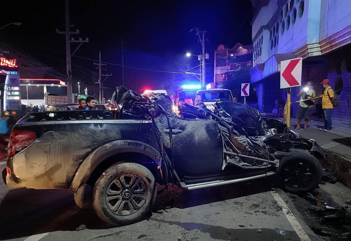 Base sa paunang report ng Calamba City Police, bumangga sa pader ng isang gusali ang pick-up truck na sinakasyan ng mga biktima at bumaliktad ito dakong 3 a.m.