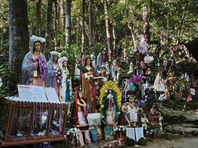 Maraming tao ang naliligo sa talon na pinaniniwalaang naglilinis ng mga kasalanan.