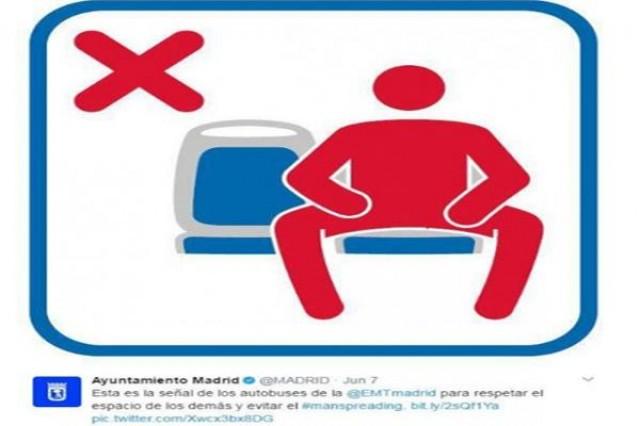 Mahigpit nang ipinagbabawal sa mga lalaking pasahero na bumukaka habang nakasakay sa mga pampublikong transportasyon sa Madrid, Spain, gaya ng bus at tren.