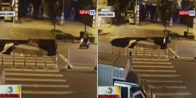 Sa ulat ng GMA News "Balitanghali" nitong Biyernes, sinabing biglang gumuho ang malaking bahagi ng kalsadang sa Beihai City sa hindi pa malamang dahilan.
