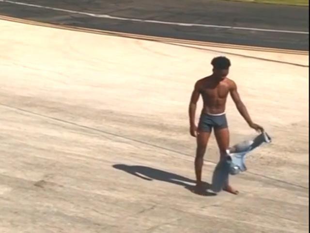 Isang 19-anyos na lalaki na boxer shorts lang ang suot ang gumawa ng eksena sa isang paliparan sa Atlanta, USA nang makapasok siya sa runway, tumambay at nagtangka pang pumasok sa kalalapag lang na eroplano.
