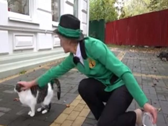 Bukod sa bisikleta at uniform, makatatanggap din ng budget ang babae ng 5,700 roubles o katumbas ng mahigit P4,600 kada buwan para tiyakin na masaya at hindi magugutom ang mga pusang-gala. (Larawan: screengrab mula sa Reuters' video) .-- Reuters/FRJ, GMA News