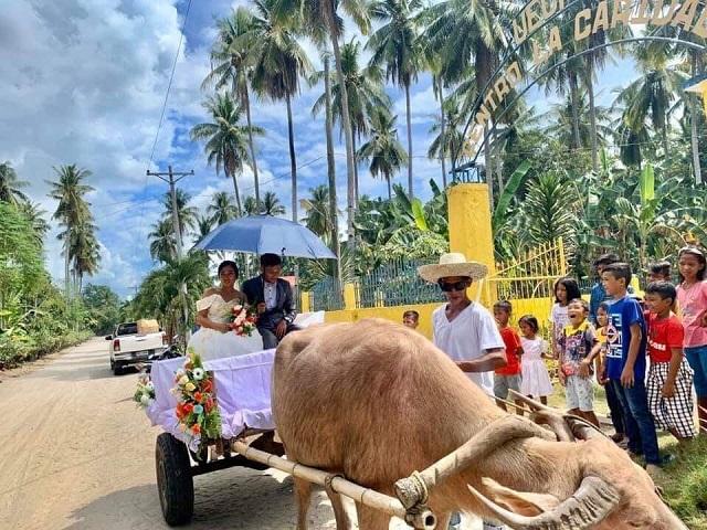 Sa halip na bridal car ang kanilang ginamit ay isang kariton na hila-hila ng kalabaw ang kanilang sinakyan.