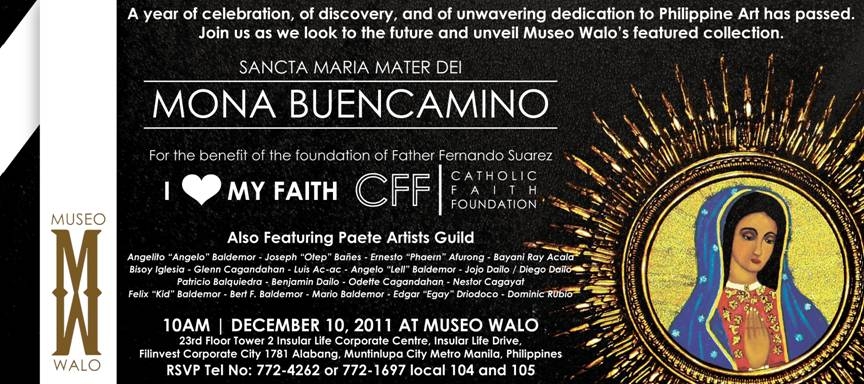 Museo Walo, Milrose Corporation’s tribute to the eight contributing artists to its latest development, The Batis Project, is an institution crafted in the spirit and cause of the arts in the Philippines. It is a museum founded in honour of eight artists at the pinnacle of their careers in the fields of Architecture, Landscape Architecture, Interior Design, Furniture Design, Fashion Design, Ceramic Pottery, Sculpture and Painting. With its opening last year, the museum has since been holding up to its advocacy to promote and to develop Philippine Art. So upon reaching its first anniversary on the 8th of December 2011, Museo Walo is celebrating this momentous occasion with another exhibit entitled Sancta Maria Mater Dei. It will be featuring over a hundred works of art by Mona Buencamino and the Paete Artists Guild.