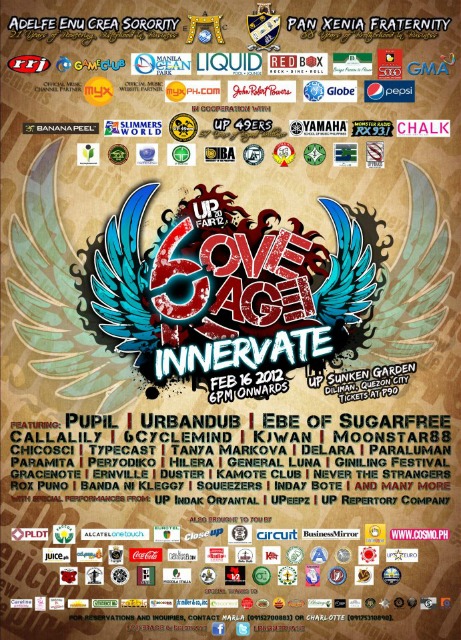 LoveRage 6: Innervate is a concert event sponsored by Adelfe Enu Crea Sorority, UP Pan Xenia Fraternity, and UP 49ers for the upcoming UP Fair 2012.