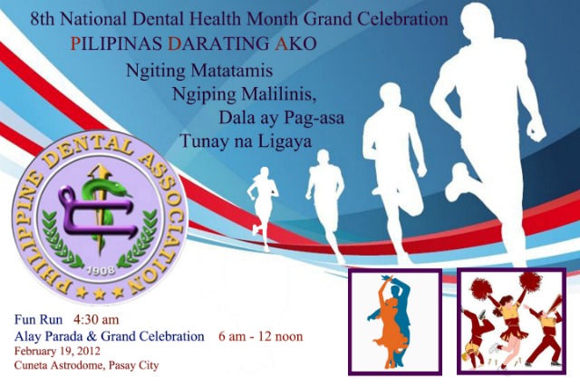 The Philippine Dental Association celebrates the 8th National Dental Health Month with a fun run and grand parade on February 19 at the Cuneta Astrodome. With the theme "Ngiting Matatamis, Ngiping Malilinis, Dala ay Pag-asa, Tunay na Ligaya," the event begins at 4:30 a.m. with a fun run, and the Alay Parada and grand celebration from 6 a.m. to 12 noon.