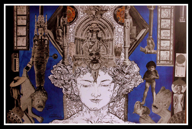 Now, looking at the artist’s “portraits of memory” in the show, we’d notice that the characters in these portraits derive from our collective (international) memory of fairy tales, legends, myths, fables and other cosmological sources, each a jumbled child of mnemonics born of this memory’s confused splicing of their sources’ genes, producing thus a new community with its own potential symbology and semiosis almost independent of their parents’ own. With these new creatures, then, Semper transforms the societal Mnemosyne of a universal myth to become a Mnemosyne of the private, almost self-indulgent, ego (the artist’s as well as the viewer’s own reading ego).