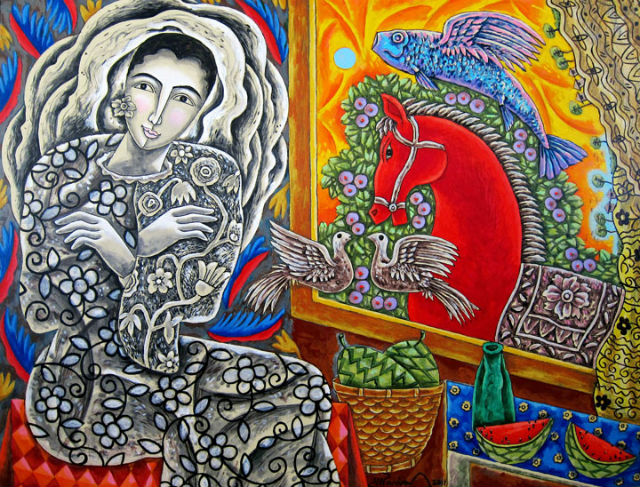 The naïf works of eminent painter and Thirteen Artists Awardee Mario Parial have long been characterized by lively exuberance. The fantasy worlds of color and life that he brings out in his paintings have made him one of the most sought-after artists in the country. His reputation as a maverick in the art scene has seen him creating works that are as lively today as when he started his practice in the 60s.