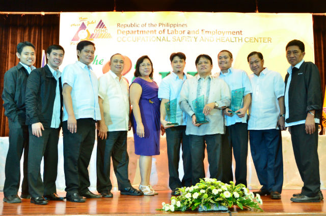 Receiving the GKK Awards are Maynilad’s Quality Environment Safety and Health Team led by Engr. Francisco Arellano (4th from left) and Wastewater Management Team led by Engr. Antonio Garcia (2nd from right), shown here with Ma. Teresita Cucueco, Executive Director of the DOLE’s Occupational Safety and Health Center (5th from left).