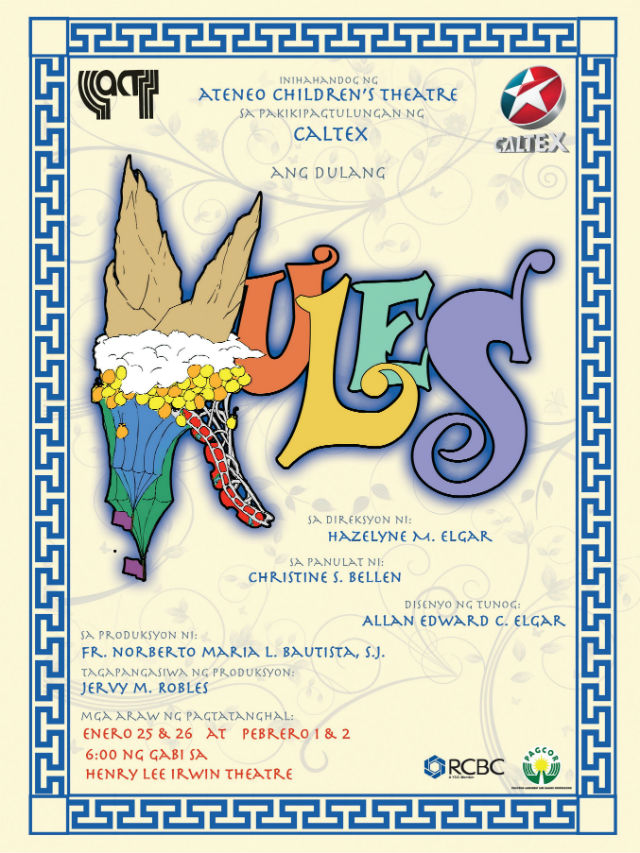 Journey with Kules from perya (circus) to Olympus in Ateneo Children’s Theater’s annual production for its 81st season, Christine S. Bellen’s Kules. This Filipino musical is an adaptation of the Greek tale Hercules. The main character Kules, goes on a journey to self-discovery. Set in a perya (circus) where amusement is at the core of all activities, the life of the crew is a testimony that happiness is indeed fleeting. While everyone manages to mask his insecurities and somehow come out a star performer in his act, Kules gets by each day without an ounce of confidence. On his birthday, the 11th anniversary of the day his adoptive parents found him, he gets confronted by two figures promising to lead him to discover his identity. Bisyo (vice), who presents himself as Happiness, assures Kules of experiencing what he has always been yearning for—a good life. Opposite to Bisyo is Kagandahang Asal (virtue), who vows to help Kules discover his inner strength. The play reveals the human capacity to surpass the lofty ideals of beauty, strength, and power that have long been ingrained in human consciousness. It is about the value of friendship and its potential to bring forth great things. Behind the production is a directorial team headed by Ace M. Elgar, together with JJ D. Ignacio and Adrian C. Reyes. Rediscover the road to triumph and glory at the Irwin Theater, Ateneo Grade School on January 25-26 and February 1-2 at 6 pm, and January 28-31 and February 2 at 8:30 am. Call 426-6001 local 7122 to reserve your tickets. Press release and photo from Ateneo de Manila University More Videos