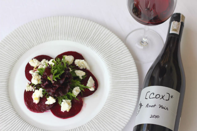 Indigo's Executive Dinner starts off with roasted beets & goat cheese paired with wine.