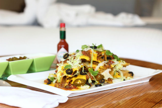 Room Service has never been this good, including a platter of Nacho Grande with an American themed meal.