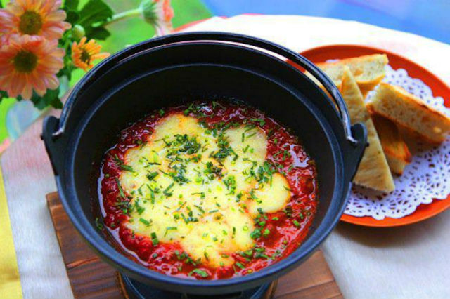 Mozzarella Cheese Pot served Fondue style with special Tomato Sugo