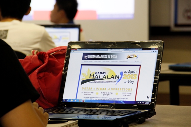Gabay Halalan is a call and text service facility organized by the Simbahang Lingkod ng Bayan (SLB). It provides voters with basic services such as a precinct finder, candidate profiles—senatorial and local candidates, party list profiles, and election information. The call and text center facility is open to election-related questions that voters can access through their mobile phones.