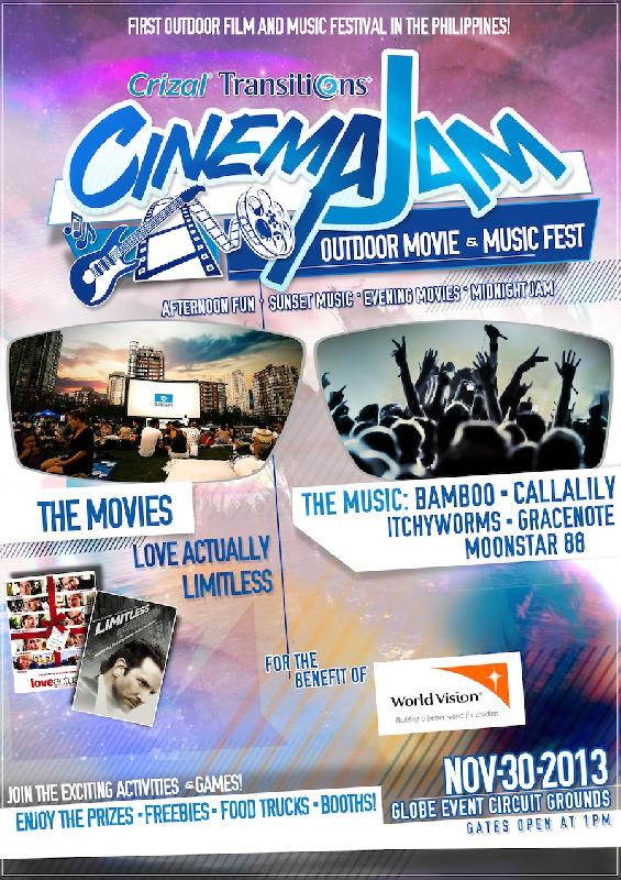 Crizal Transitions' Cinemajam brings together some of the country’s top bands, two special movies, and a host of exciting activities with the first ever outdoor movie marathon and music festival in the Philippines, on November 30, 2013 at Event Circuit Makati.