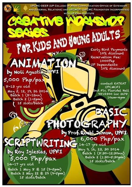 Venue: UP Film Institute Media Center Bldg. (beside Plaridel Hall) Room 203 (Mac Lab)