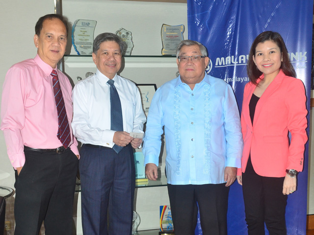 Above photo shows Mr. Mario Marfal, Malayan Bank-GMA Branch Manager; Mr. George Martirez, Malayan Bank President; Atty. Felipe L. Gozon, GMA Network Chairman and CEO, GMA Kapuso Foundation Chairman, and Malayan Bank Vice Chairman; and Ms. Anna Siapno, Malayan Bank Chief Marketing Officer.