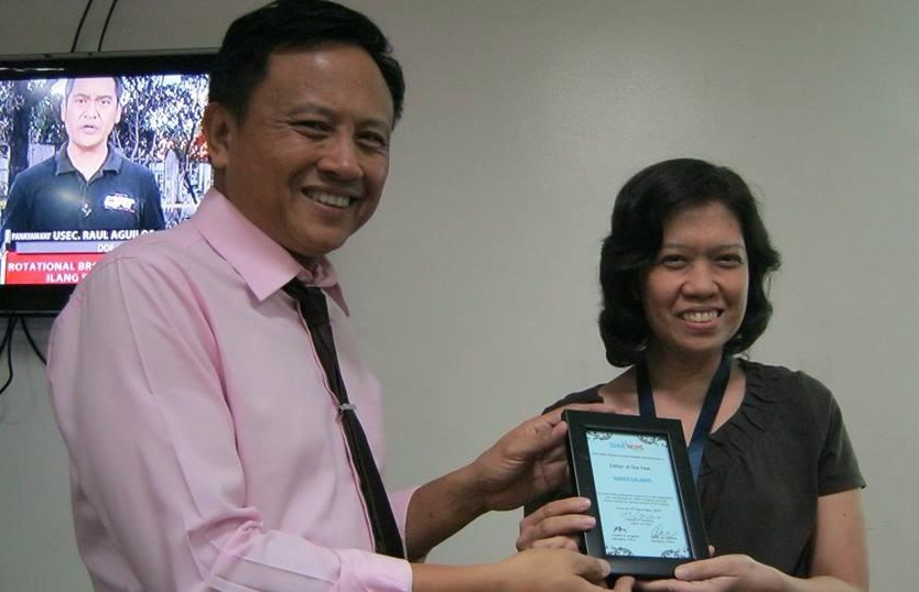 Individual honors went to Siegfried Alegado from the Economy section who was named Reporter of the Year, Sports editor Adrian Dy who was voted Writer of the Year, and City Editor Karen Galarpe (shown in photo with Howie Severino) who garnered the Editor of the Year award.