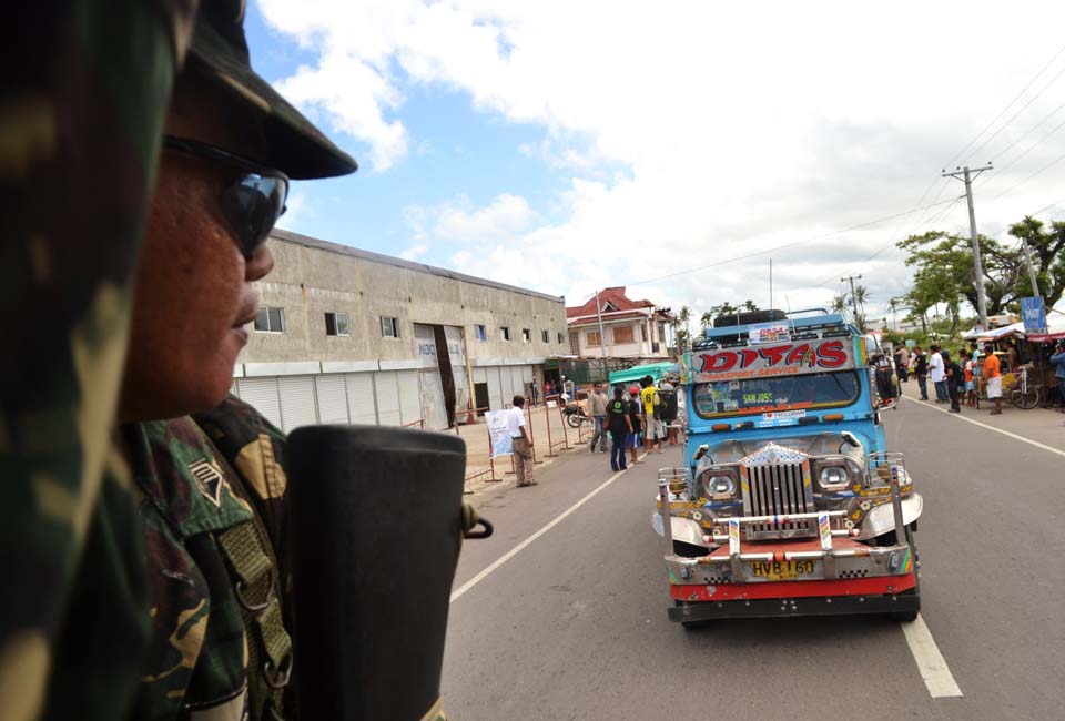 The Philippine Army took part in the community-wide drill, that included comandeering jeepneys to take the participants to the targeted evacuation center.