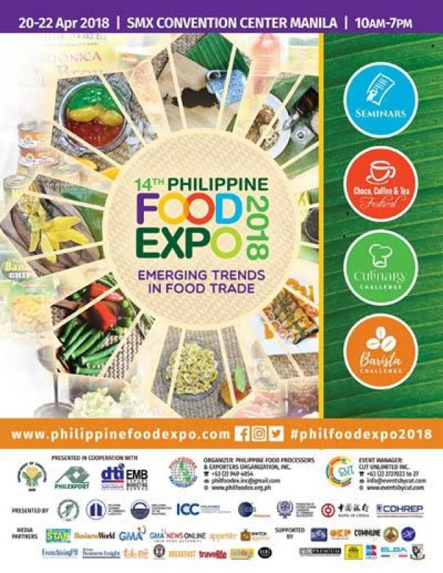 The 14th Philippine Food Expo with the theme “Emerging Trends in Food Trade” is scheduled on April 20 to 22 at the SMX Convention Center, Pasay City, Manila, Philippines.