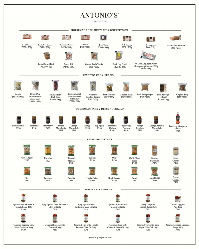 Since the Taal Volcano eruption last January, road trips to Tagaytay (that are mainly food trips, let’s just admit it) have been limited. Good thing there’s Antoniosfoodlovers, authorized distributor of Antonio’s Tagaytay, who can help satisfy our cravings, pronto. They deliver everyday—all you have to do is place your orders via Viber at 09175262288 or through their official Facebook and Instagram accounts.