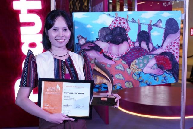 Hanna Joy Sayam from Negros Occidental was awarded the grand prize in the figurative category for her artwork entitled “Pira-pirasong Tela ng mga Marias.”