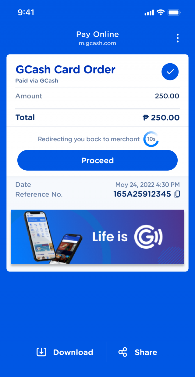 6. Proceed with your payment. Your GCash Card will be delivered within 4-10 business days (3-4 days for Metro Manila, and 5-10 days for provincial orders).