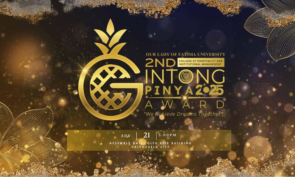 In celebration of its 30th anniversary, Our Lady of Fatima University - College of Hospitality and Institutional Management (CHIM), proudly marks the return of the Gintong Pinya Awards 2025, a tribute to excellence, partnership, and distinction in the fields of Hospitality, Tourism, and Nutrition.