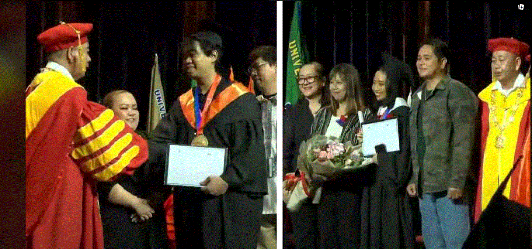 Each representing UE’s Manila and Caloocan campuses and receiving the special award on top of their respective Latin honors of magna cum laude are Isabella Rianna Garay, who graduated with the degree of Bachelor of Science in Political Science, and Gekenzy Morales, whose diploma is in Bachelor of Science in Computer Engineering.