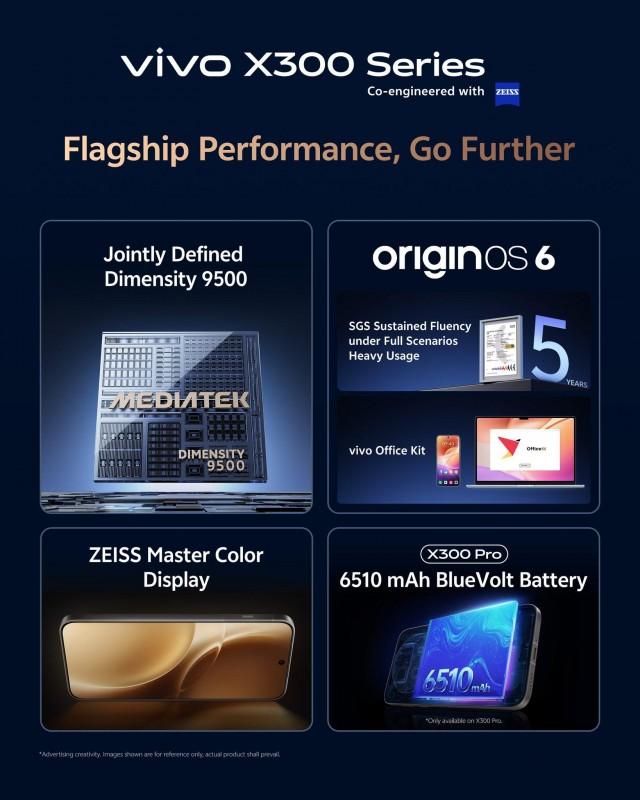Beyond imaging, the vivo X300 Series also elevates performance and everyday use. It runs on the MediaTek Dimensity 9500 Platform for fast speed and efficiency. The vivo X300 is powered by a 6040 mAh battery, while the vivo X300 Pro carries a larger 6510 mAh battery, both with support for 90W FlashCharge and 40W Wireless FlashCharge.