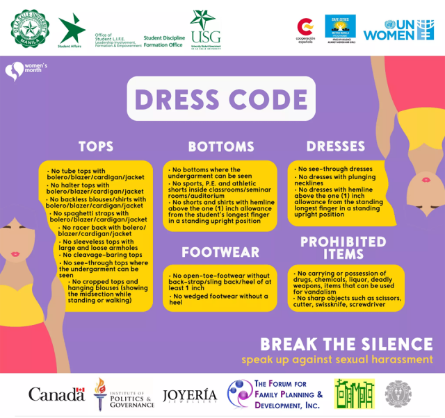 The University Student Government of the De La Salle on Thursday took down a post detailing a dress code for their "Break the Silence" event and issued a statement addressing the concerns people raised.