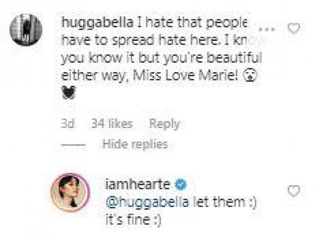 In spite of the negative comments, Heart did not go as far as arguing with her critics, even when her followers came to her defense.