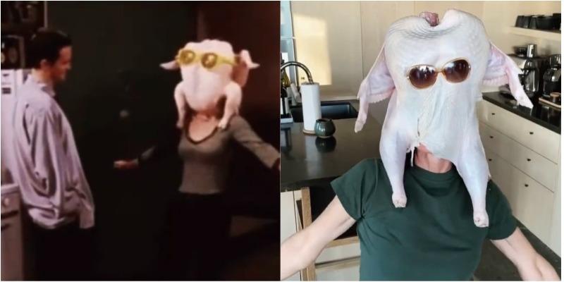 Courteney shared a short clip of herself with a turkey on her head, wearing shades, and dancing to the theme song of "Friends" on Instagram.