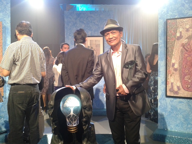 A 59-year-old sculptor, Merlito V. Gepte, considers his win a boon from God for his lifetime dedication to the arts. “Bulalas” shows a bust of a man screaming, with the bust opening up to a light bulb which contains a sprightly tree.