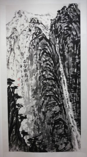 No wonder most of his work are landscapes such as woods, cliffs, rivers, mountain peaks and waterfalls. He said waterfalls crashing from the top of the mountain is his favorite theme.