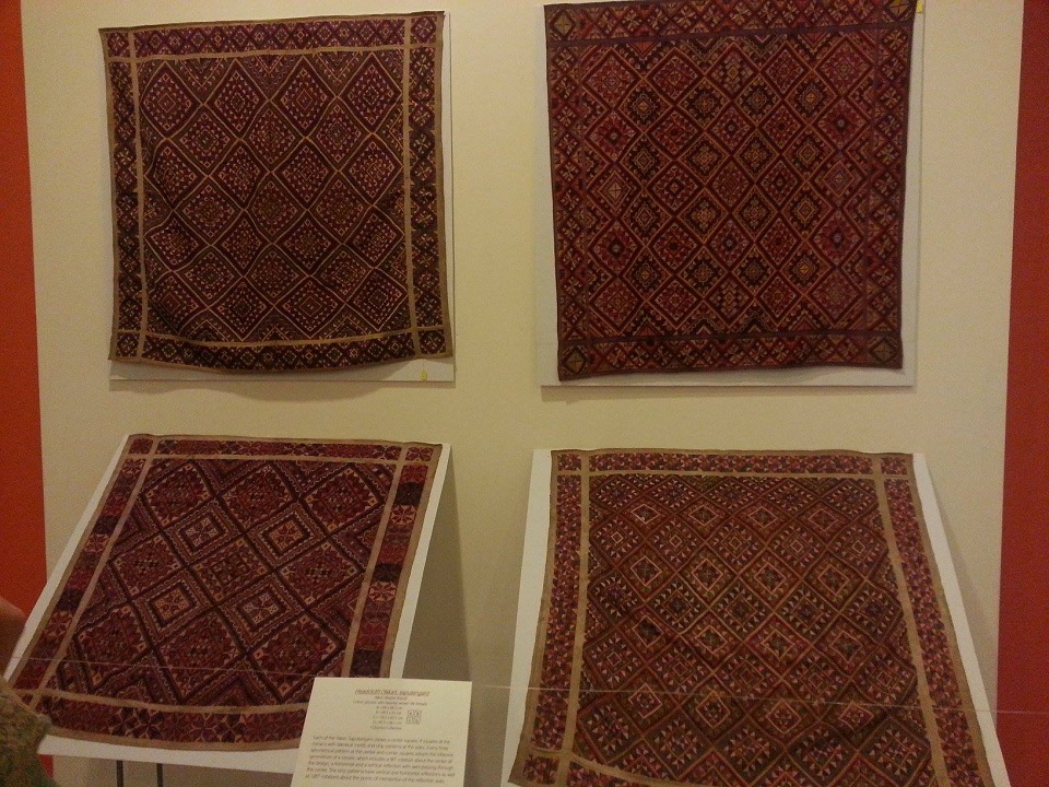 Four samples of the Saputangan, a Yakan headcloth, at the 'Woven Universes' exhibit