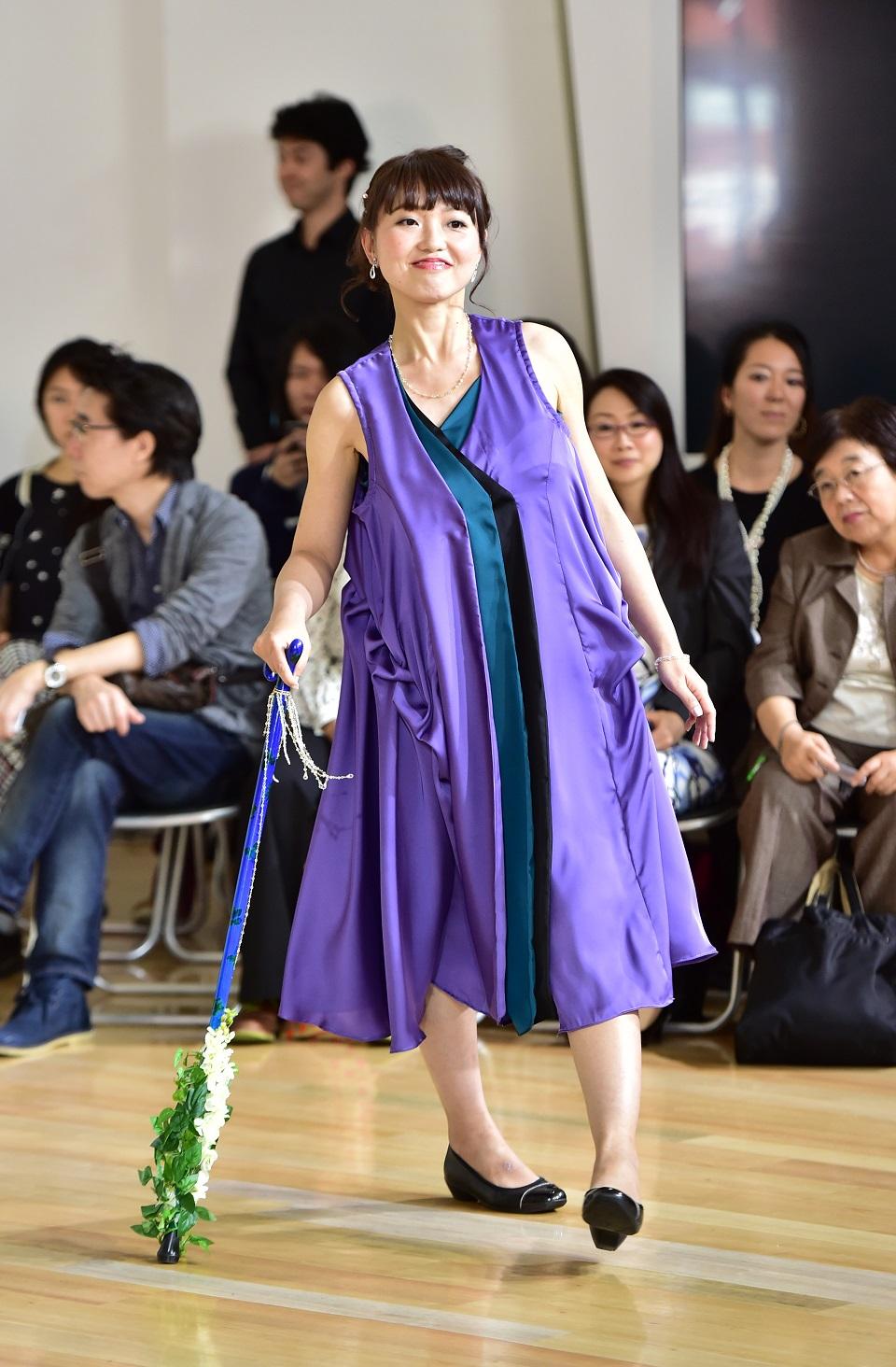 Akako Ozawa, 32, a singer with muscular dystrophy, walked down the runway with the help of a flower-decorated cane.
