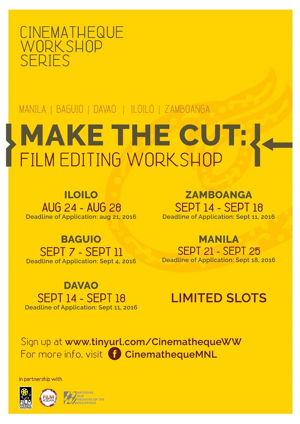 The Film Development Council of the Philippines will be holding a series of film editing workshops at the FDCP Cinematheques across the country later this month and in September.