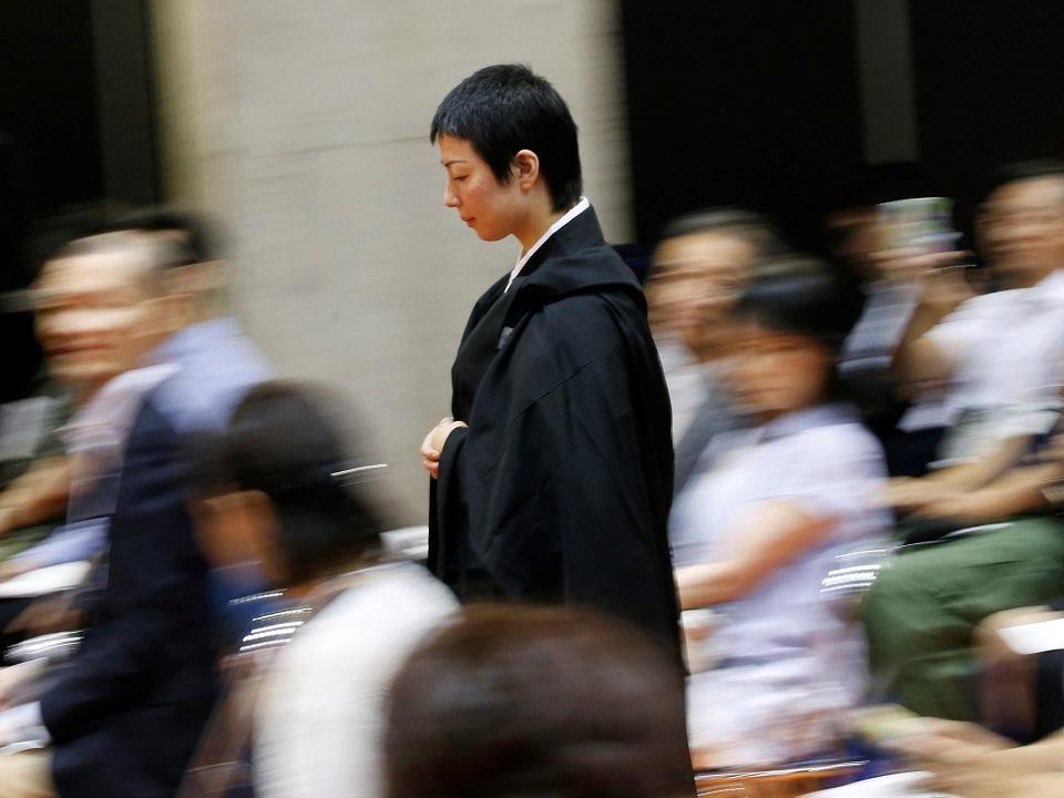 Koyu Osawa, the nun, who wore a black robe and sported closely cropped hair, was voted the spectators' favorite at the Tokyo event organized by Obosan.com, a web-based provider of Buddhist services such as funerals and marriages.