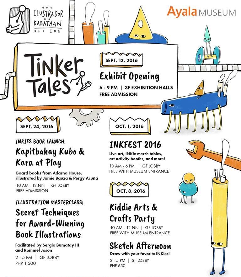 “Tinker Tales” can be viewed from September 12 until October 16 at Ayala Museum, Makati Avenue cor De La Rosa St., Greenbelt Park, Makati City. Visit Ang INK's Facebook page for more information.